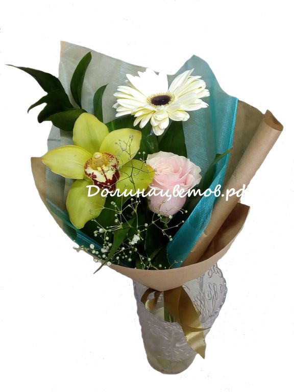Ассоль 1090 руб. В корзину Состав: роза, гербера, орхидея цимбидиум, зелень.Упаковка: крафт-бумага. Состав: роза, гербера, орхидея цимбидиум, зелень.Упаковка: крафт-бумага.