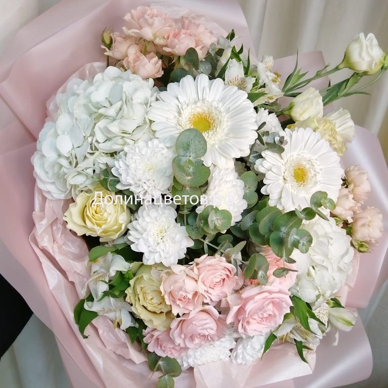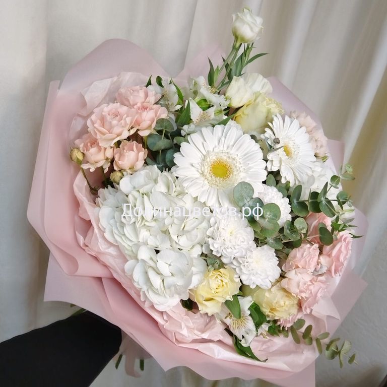 Магия чувств 4860 руб. В корзину Состав: роза, роза кустовая, хризантема кустовая, эустома, гидрангея, гербера, зелень Состав: роза, роза кустовая, хризантема кустовая, эустома, гидрангея, гербера, зелень
