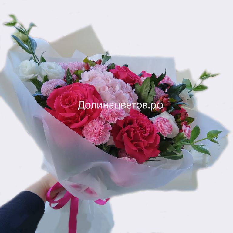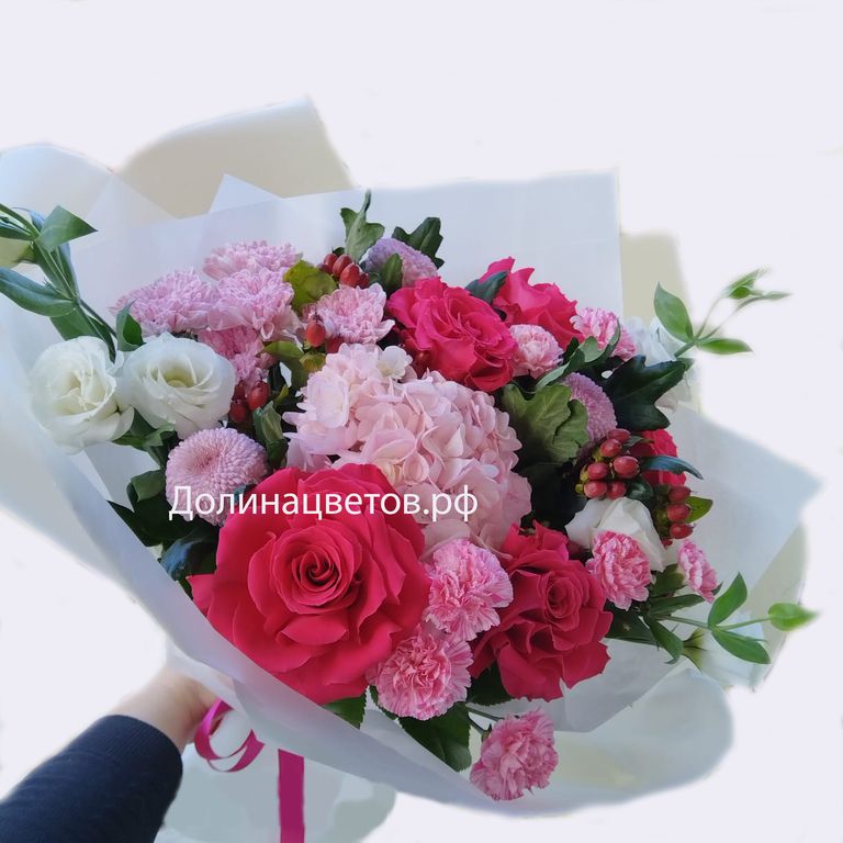Мерси 4090 руб. В корзину Состав: роза, эустома, гвоздика кустовая, гидрангея, хризантема кустовая, зелень Состав: роза, эустома, гвоздика кустовая, гидрангея, хризантема кустовая, зелень